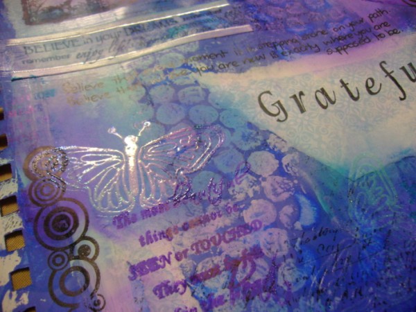 and journalled around the page about transformation, freedom, change and the colour red. I also rubbed silver paint around the outside edges of the pages to frame them.